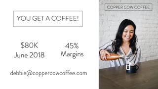 Copper Cow Coffee is a food and beverages retailer with online presence and sell coffee and tea beverages food and beverages related products. Copper Cow Coffee has tripled revenue annually since its debut at the 2017 Winter Fancy Food Show four years ago where it won an innovation award and soon after entered. Debbie is on Shark Tank in search of 600000 in exchange for a 4 stake in her company.
